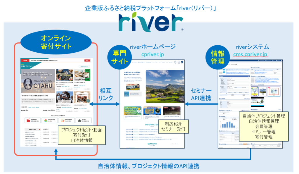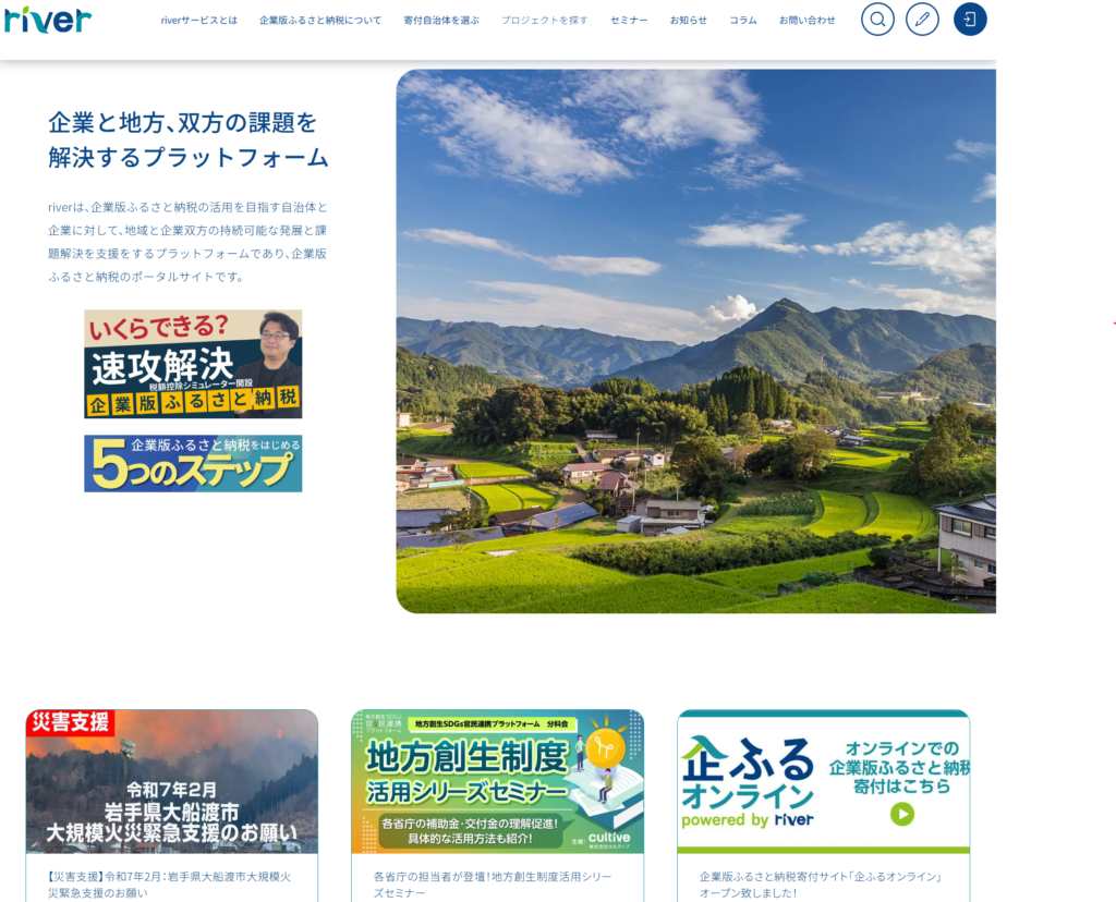 プロジェクトぺー時作成に必要な項目をriverへ登録することで、姉妹サイト「企ふるオンライン」への掲載も可能です。