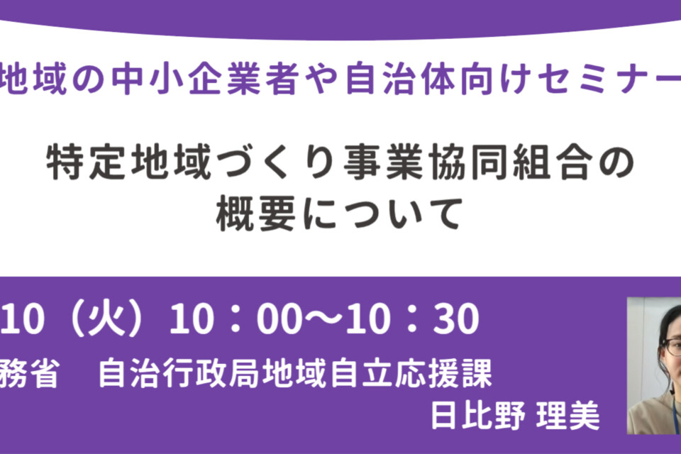 総務省の担当者が登壇し、セミナー「特定地域づくり事業協同組合の概要について」を開催します。